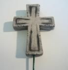 Kors i Sandsten incl. pind (Flad og med beslag på bagside) - Ornament 10mm tyk, bruges til bla. Ikoner, pynt, potter, Gravsted mm. ---