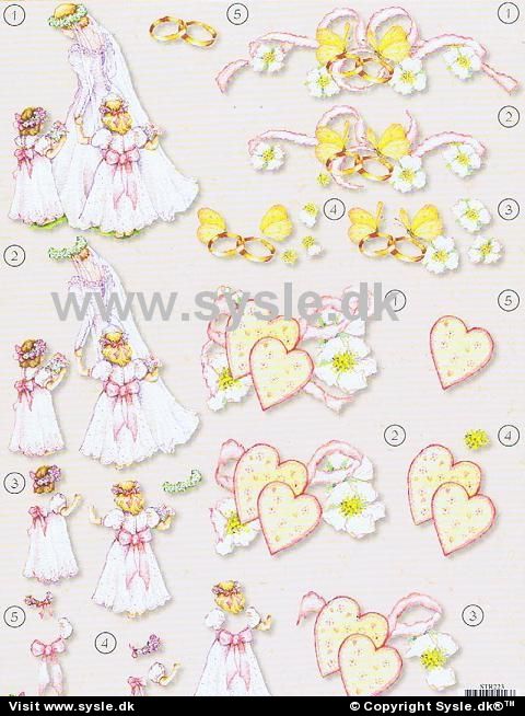 Shop > 3D: Alm./Pyramide > 3D Bryllup+sølv/guld > 0223 - 3D Brud og Brudepiger - 3 kort