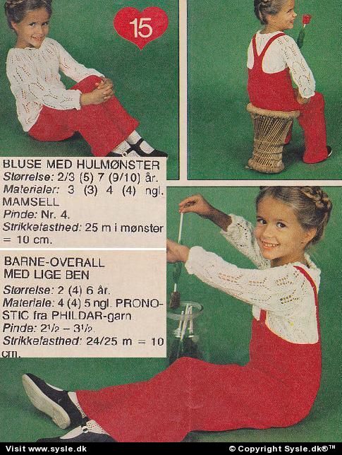 *Materialebrug mm. SE FOTOS* strik bluse med hulmønster str. 2-10år - overall m. lige ben str. 2-6år - overall m. pludderbukser str. 1-4år - klassisk bluse m. rund hals str. 1-6år. *KLIK på FOTO og se flere oplysninger. Hv 47-1979 #overall