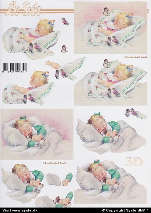 Shop > 3D: Alm./Pyramide > 3D Dåb, Baby* > 7162 - 3D Dåb - Baby sover - 2 på ark.