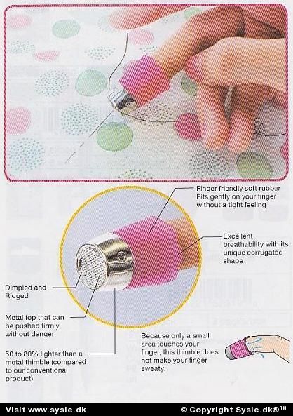 *KLIK på foto og se mål mm.* Fingerbøl fra Clover str.14,5 - 15,5 og 18mm (14,5 er den mindste) Det mest behalige fingerbøl nogensinde pga. den bløde hætte af silicone som passer perfekt til din finger.