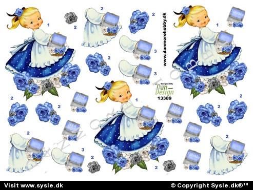 Shop > 3D: Alm./Pyramide > 3D Blomster/Frugter > 13389 - 3D IRMA Pige/Blå roser - 3 på ark.