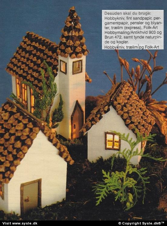 *Materialebrug mm. SE næste FOTO* Kan meget nemt laves større eller mindre. Hv 42-2000: Hyggelige huse tegnes op efter skabeloner. Skabeloner KAN nemt også bruges til kagehuse. #kogle id #kirke id #byg en by id #klip ud ark id #kagehus id