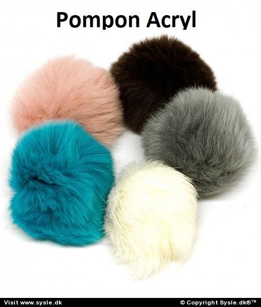 Pomponer i 100% polyester. Flotte, tætte og buskede med skjult lille elastik øje. 416210.080 Tyrkis fører vi ikke.