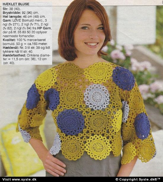 Hv 34-00-47: Mønster: Hæklet skuldertrøje i rundeller - str. 38-40 *org*