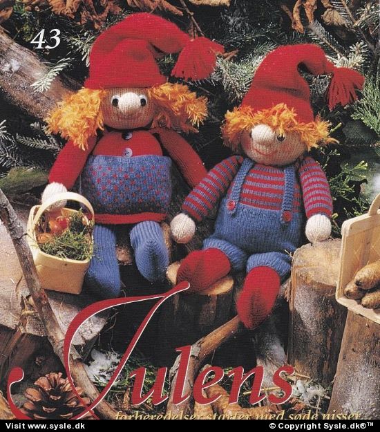 *Materialebrug mm. SE næste FOTO* In 09-1999/ Julens forberedelser starter med søde nisser. Strikket nissepige og nissedreng med orange pelshår #nissepar st #nissebørn st #nisser st