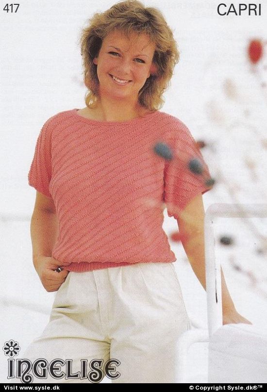 In 0417/ Mønster: Strik sommerbluse med skråmønster 36-46 *org*