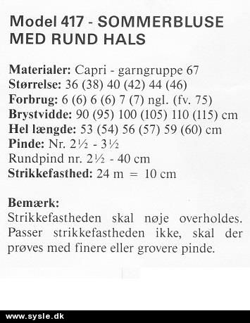 *Materialebrug mm. SE næste FOTO* p. 2,50- 3,50 In 0417/ Sommerbluse med rund hals #skrå st (strikkes alm. nede fra og op med vrangmønster på skrå) #sommertrøje st #dametrøje st