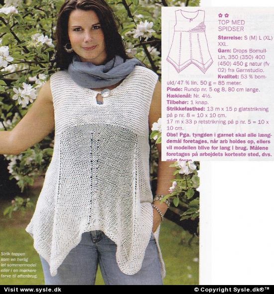 *Materialebrug mm. SE næste FOTO* p. 5,00- 8,00 Hv 32-2009: Top med spidser (starter med 232m) #skrå st #tunika st #uden ærmer st