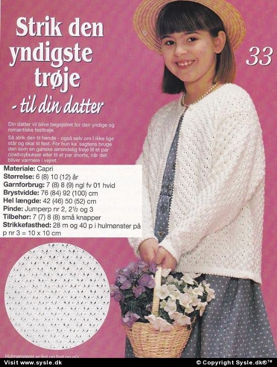 In 03-99-39 Mønster: Strik cardigan str. 6-12år. *org*