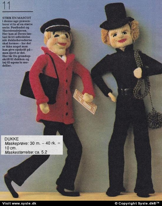 *materialebrug mm. SE FOTO* Højde ?cm (materialebrug er ikke på dette mønster) Hv 33-1978: Strik en mascot. #postbud br #skorstensfejeren br