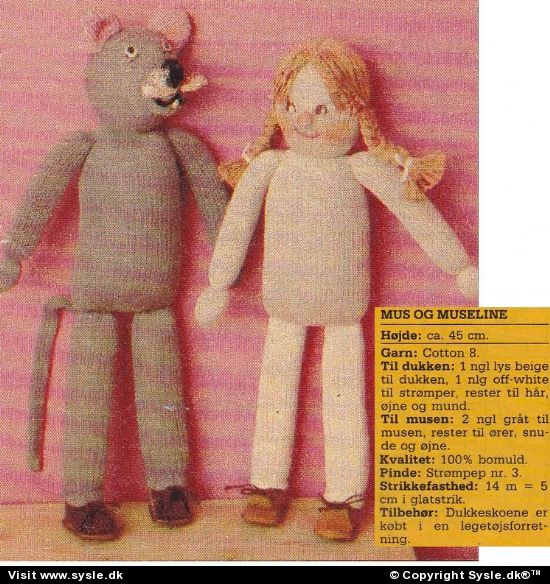 *Materialebrug mm. SE næste FOTO* H:45cm Hv 43-1989: Krammedukker Mus og Museline. (Tøj til dukken og musen se nr. Hv 44-1989: + Hv 45-1989) #Rasmus st #mus st #krammedyr st #krammedukke st #Museline st #dukke st
