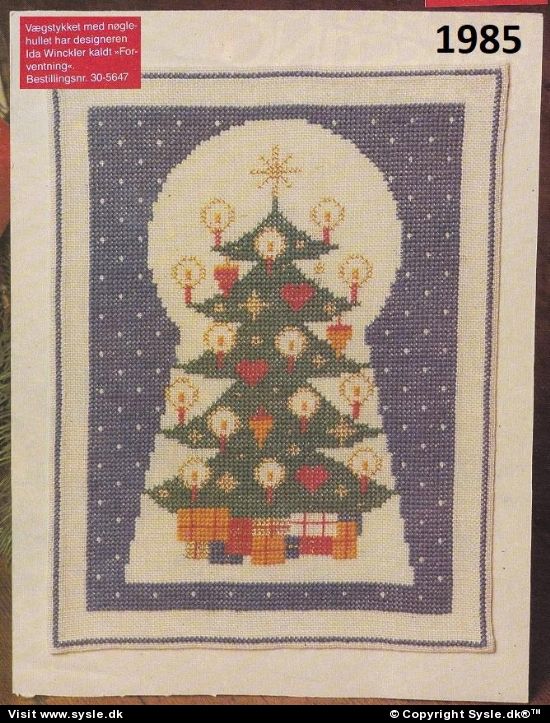 *Materialebrug mm. SE næste FOTO* Hv 38-2003: Et smugkig til julen. Fe 45-1985: Hyggelig jul i korssting. In 10-2002: Glædelig jul (0027) Design: Ida Winckler #Haandarbejdets Fremme :HF 30-5647/ #juleophæng br #juletræ br #nøglehul br #HF br
