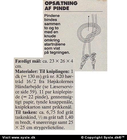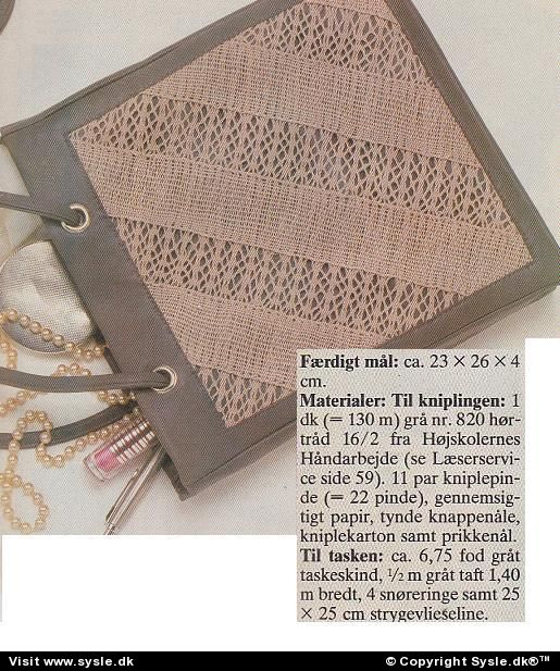 *Materialebrug mm. SE FOTOS* Taske 23x26x4cm Ao 01-1986: Smukt taskestykke. Kniplet 4k til bla. taske, pude mm. #knipling kn #taske kn #prikmønster medfølger.