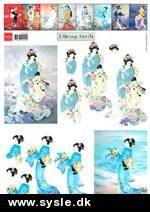 Shop > 3D: Alm./Pyramide > 3D Hobby/Håndværk > 0833 - 3D Pige i blå Kimono - 2 kort på ark+små foto *Sidste ark*