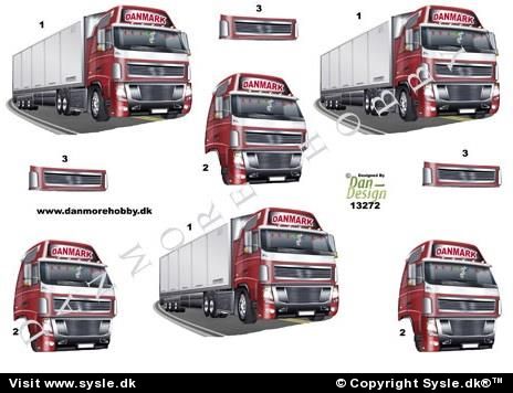 13272 - 3D ark, Rød Lastbil - 3 kort 1 ark