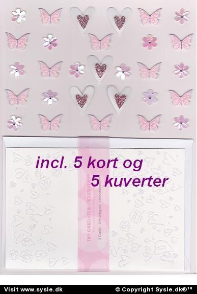 5 kort og 5 Kuverter - Bryllup/Mærkedag