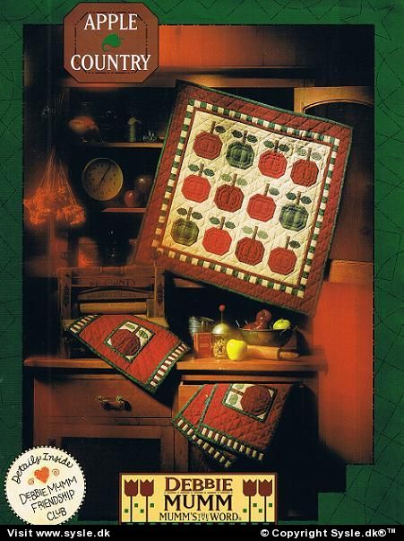 Udførlig Engelsk vejledning medfølger - Ophæng i flere - Sælges med eller uden stofstykker a. 50x55. (det medfølgende stof er ikke nok, der skal bruges ex.) Vi prøver at ramme farverne så godt det nu kan lade sig gøre. Bagbeklædning og syartikler medfølger ikke. *KLIK på FOTO og se HELE MØNSTRET* design: Debbie Mumms #ophæng sy #æble sy #patchwork sy