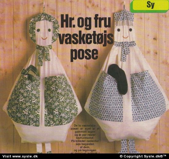 Ao 24-1974: Hr. og fru vasketøjspose med lommer til småting. Posen er åben bag på. God til bl.a. undertøj og strømper på badeværelset. #pose sy #tøjpose sy